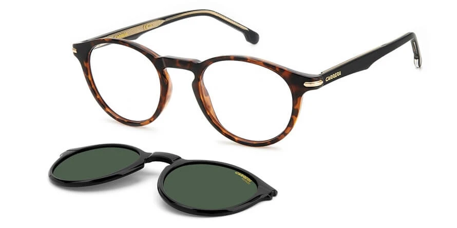 משקפי ראיה קאררה יוניסקס דגם CA 297/CS 086/UC 48-21-145 בשילוב צבעי זהב, חום, מנומר עם עדשות בצבע ירוק. סגנון הדגם אלגנטי, קלאסי. מסגרת פלסטיק. לדגם זה צבעים נוספים.