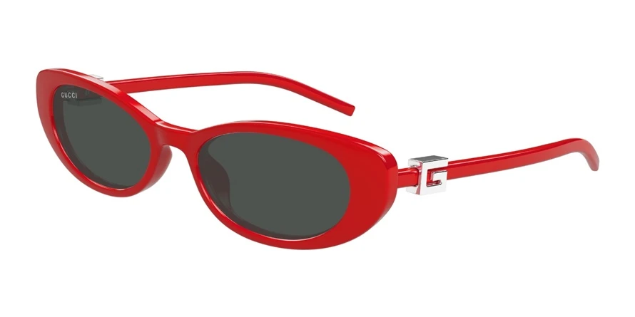 משקפי שמש גוצ'י יוניסקס דגם GG1680S 005 52-17-140 בשילוב צבעי אדום, כסף, מבריק עם עדשות בצבע אפור. סגנון הדגם אלגנטי, קלאסי. מסגרת פלסטיק. לדגם זה צבעים נוספים.