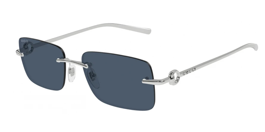 משקפי שמש גוצ'י יוניסקס דגם GG1703S 003 55-17-140 בשילוב צבע כסף עם עדשות בצבעי כהה, כחול. סגנון הדגם אלגנטי, יוקרתי, קלאסי. מסגרת מתכת.