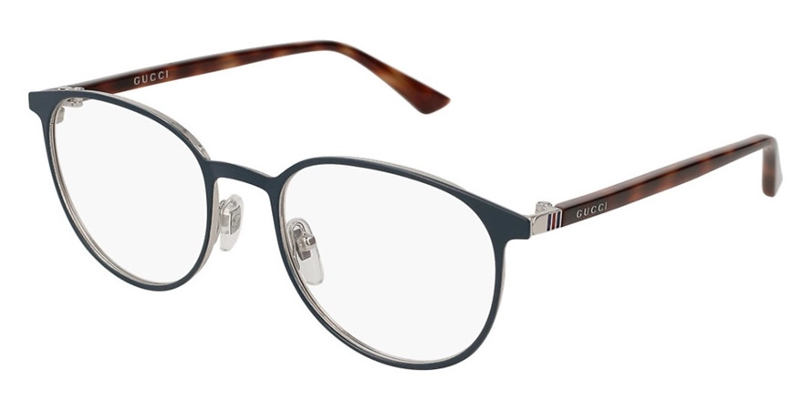 משקפי ראיה גוצ'י לנשים דגם GG0293O 004 52-19-140 בשילוב צבעי כחול, כהה, מנומר סגנון הדגם קלאסי, אלגנטי. מסגרת מתכת. לדגם זה צבעים נוספים.