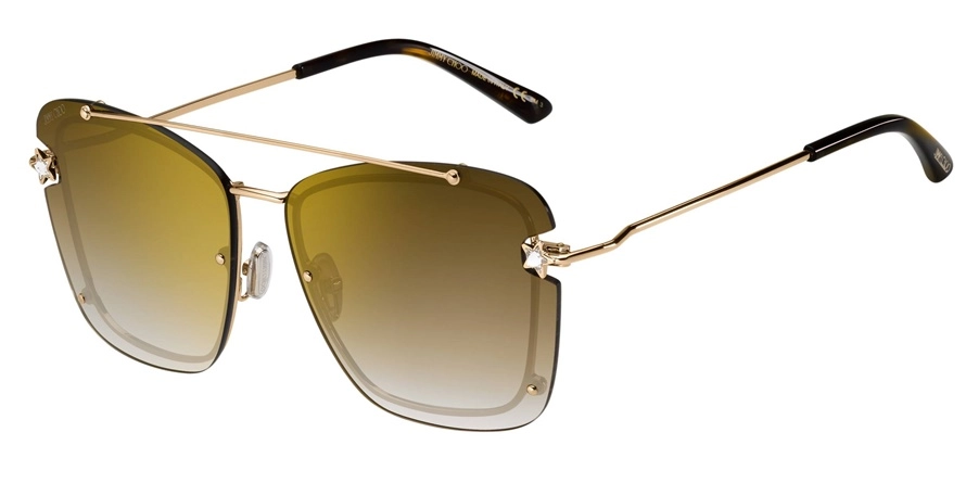 משקפי שמש ג'ימי צ'ו לנשים דגם AMBRA/S DDBJL 62-14-150 בשילוב צבעי זהב, חום עם עדשות בצבע חום. סגנון הדגם אלגנטי. מסגרת מתכת.