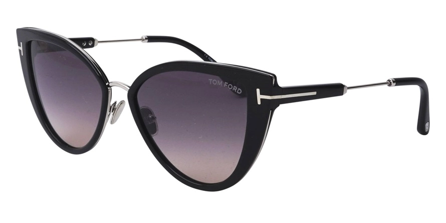 משקפי שמש טום פורד יוניסקס Anjelica-02 דגם FT0868 01B 56-18-135 בשילוב צבעי כסף, שחור עם עדשות בצבע סגול. סגנון הדגם אלגנטי, קלאסי. מסגרת מתכת, פלסטיק.