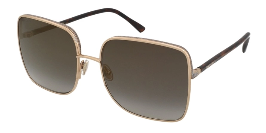 משקפי שמש ג'ימי צ'ו לנשים דגם ALIANA/S 06J/FQ 59-18-145 בשילוב צבעי זהב, שחור עם עדשות בצבע חום. סגנון הדגם אלגנטי, קלאסי. מסגרת פלסטיק. לדגם זה צבעים נוספים.